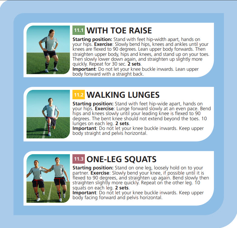 Fifa 11+ ohjelma on käytännössä jalkapalloharjoitusten alkulämmittelyksi tarkoitettu ohjelma. Fifa 11+ ohjelma on päivitetty ohjelma aikaisemmasta Fifa 11 ohjelmasta. Harjoitusohjelmaa voivat suorittaa kaikki jalkapalloilijat 14 vuotiaasta eteenpäin. Harjoitusohjelman toteuttaminen kestää noin 20 minuuttia. Harjoitukset on jaettu kolmeen ryhmään joita ovat: 1. juoksuharjoitukset kevyellä vauhdilla ja sisältäen aktiivisia venytyksiä ja kontakteja joukkuekaverin kanssa, 2. keskivartalon ja alaraajojen vahvistamiseen tähtäävät harjoitteet sekä plyometriset -ja ketteryysharjoitteet, 3. juoksuharjoitteet kovemmalla vauhdilla sekä suunnanmuutosjuoksuharjoitteet. Voimaharjoittelu on jaettu vielä kolmeen eri tasoon harjoitteiden haastavuuden mukaan.