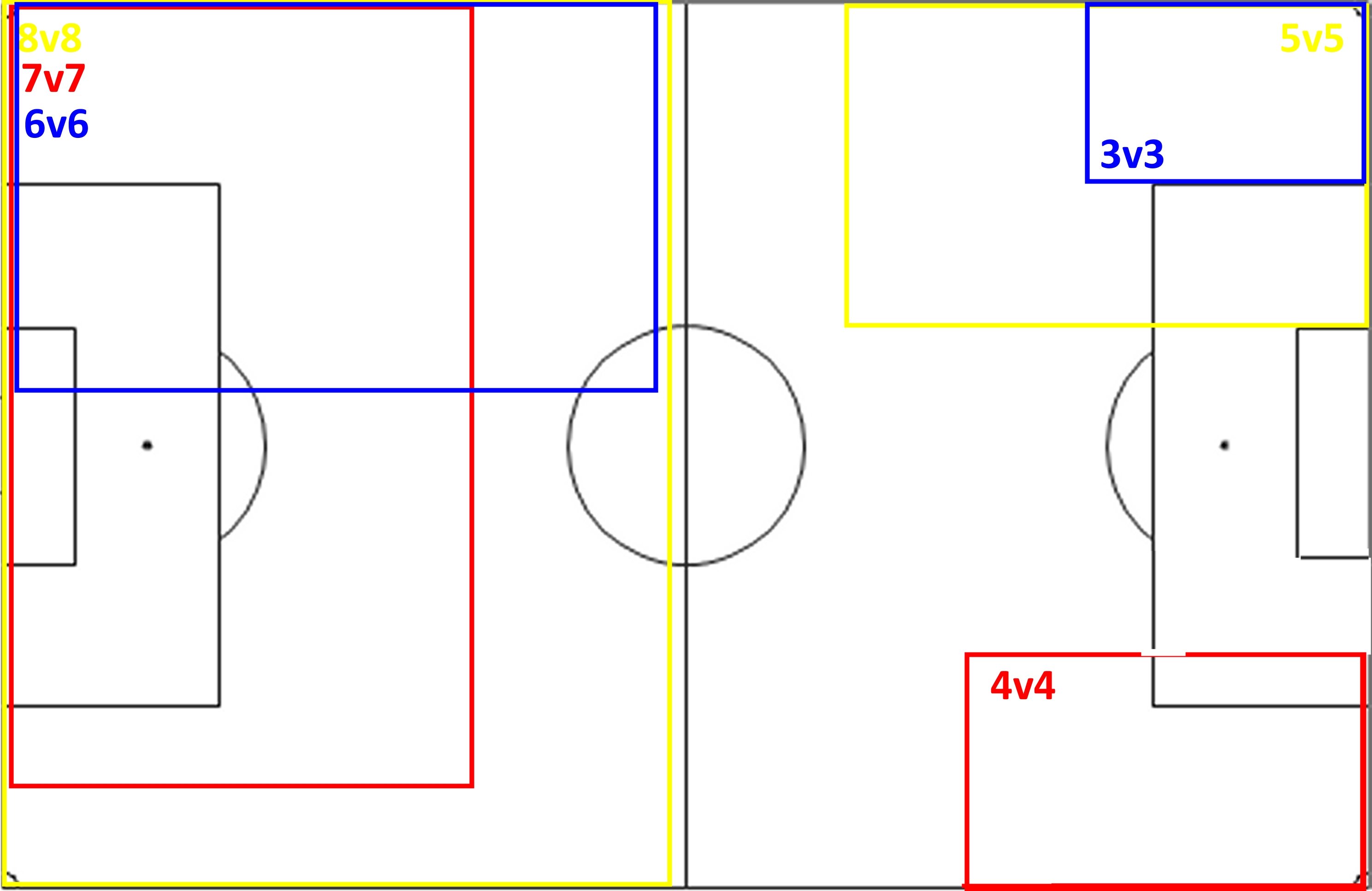 Puolikas kenttä - sivurajat 16 leveys - 5m molemmista laidoilta. |